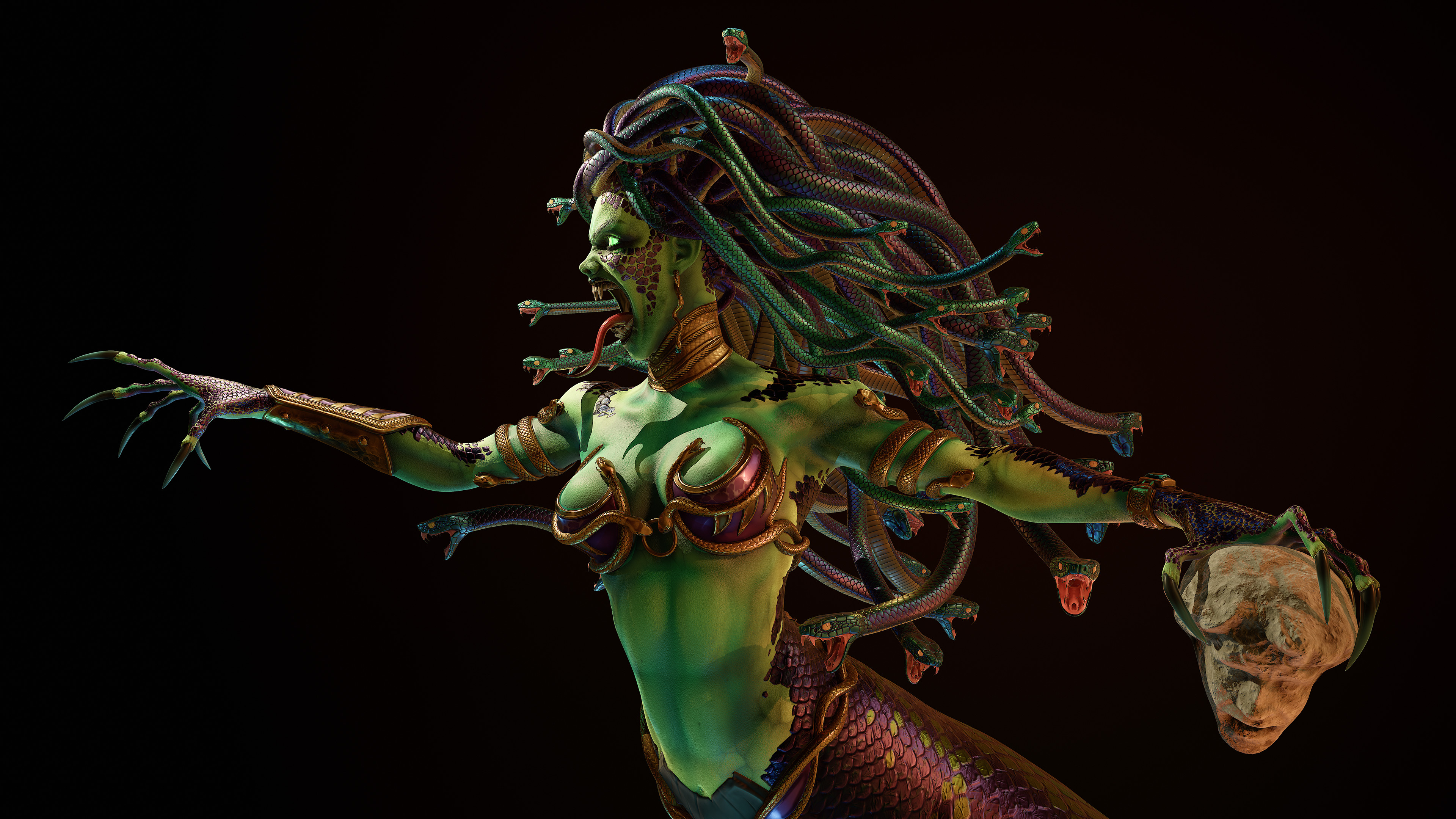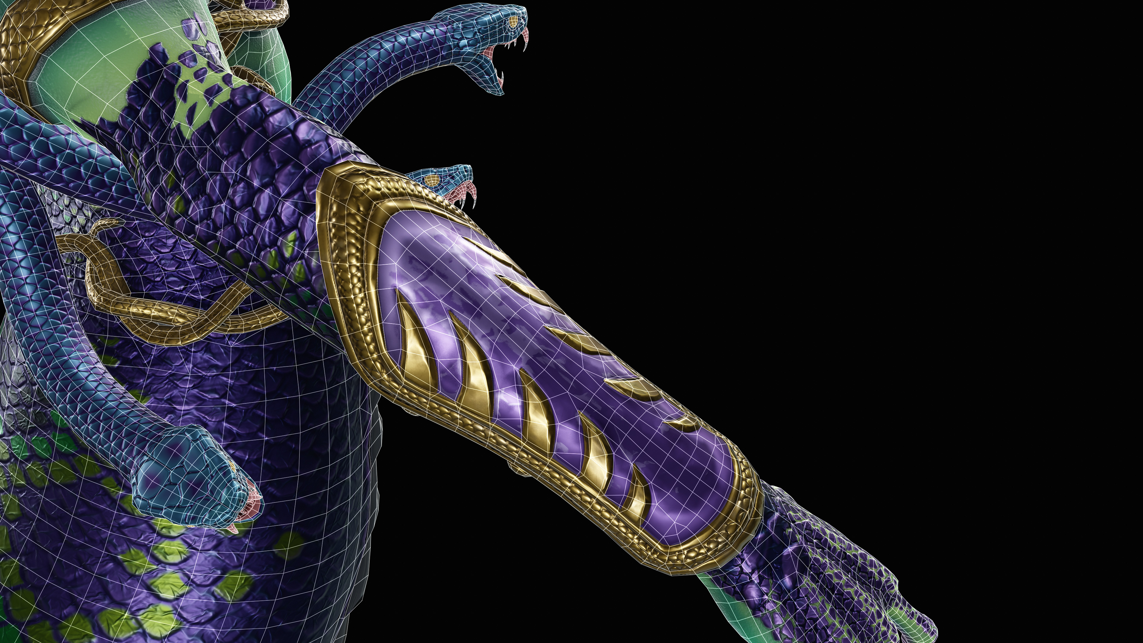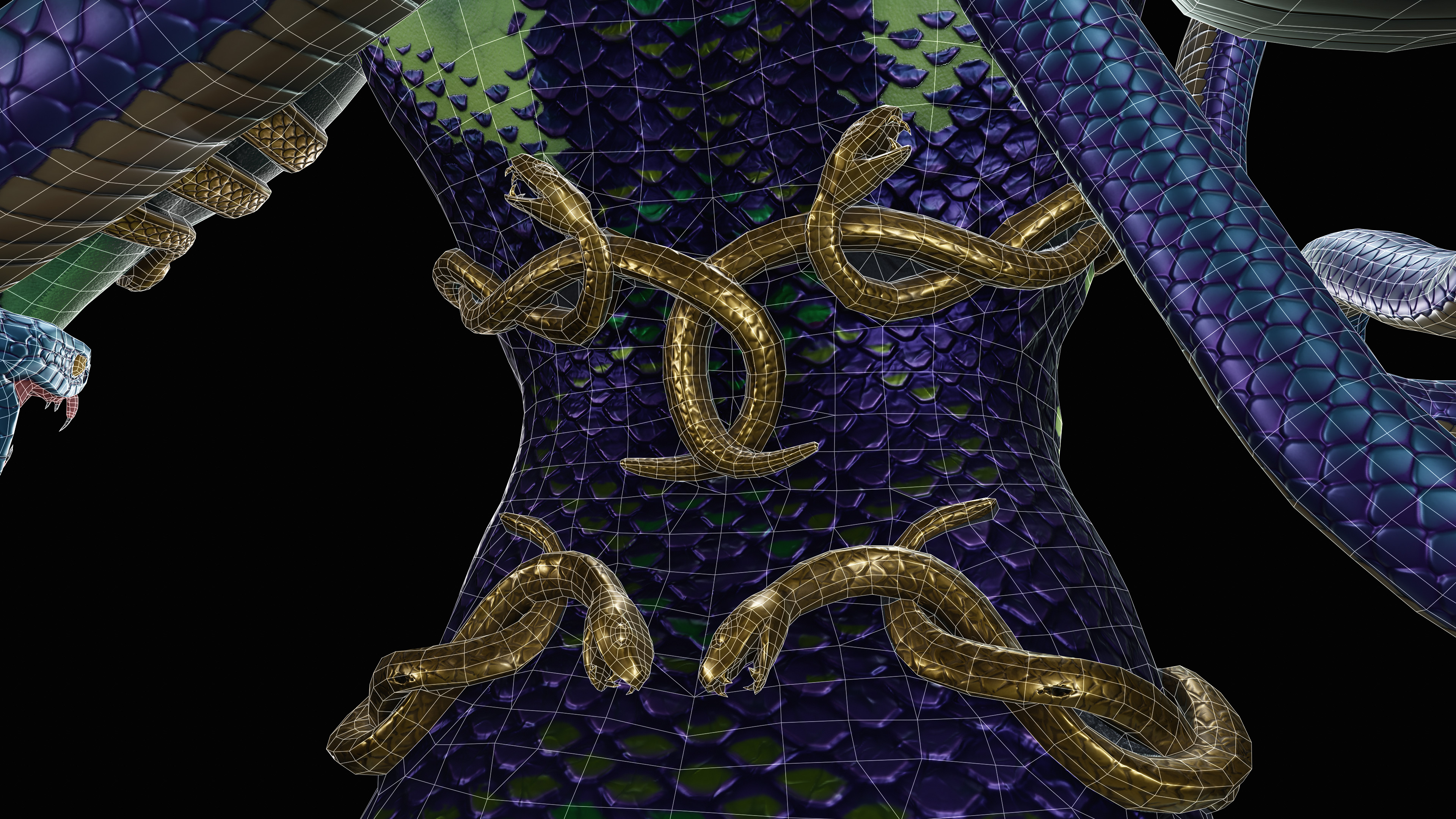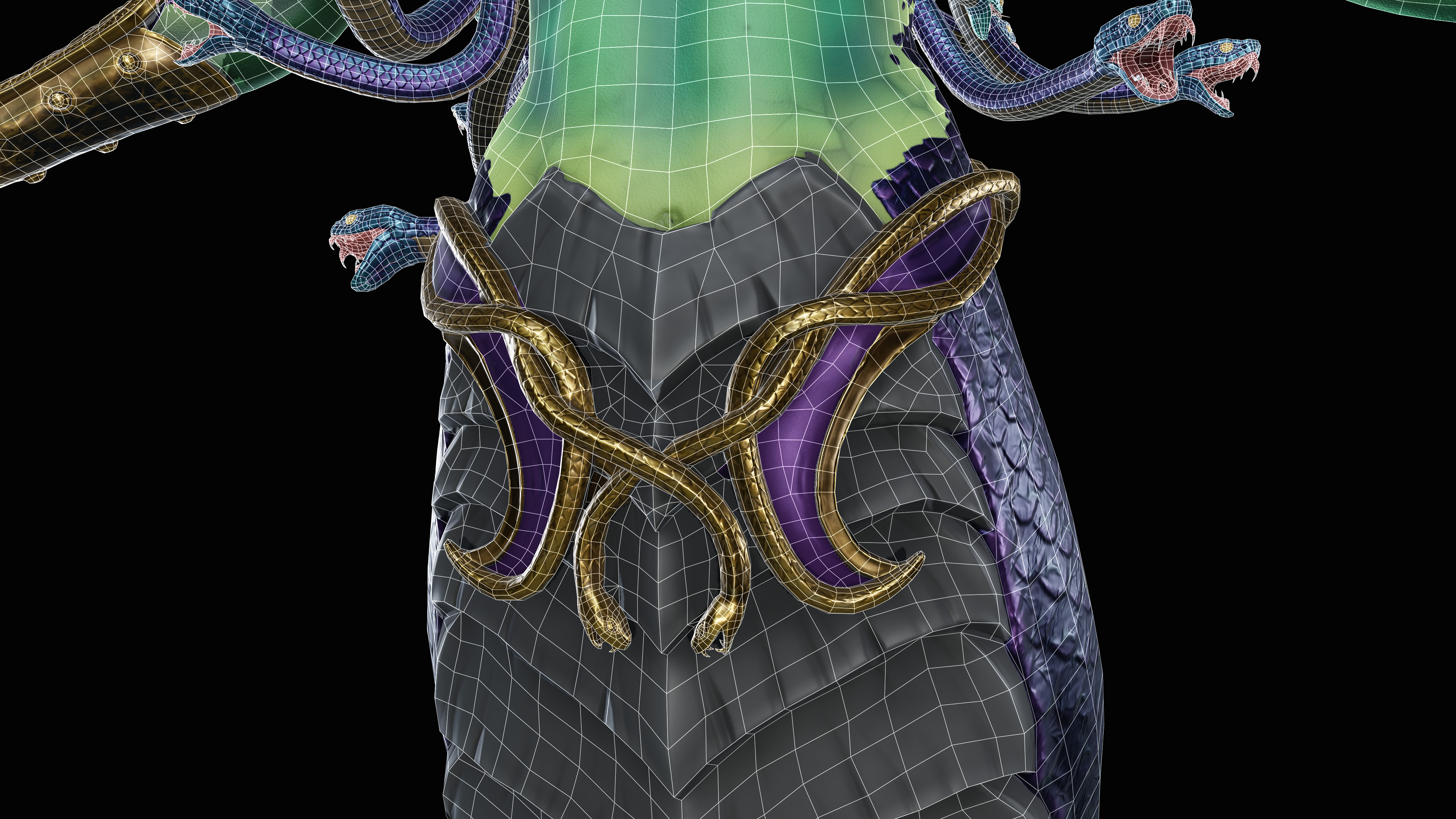 This is my interpretation of Medusa, created as a complete real-time character model with sculpting, texturing, shading, and rendering. My goal was to blend mythology, creature design, and stylised realism to create a Medusa that feels powerful, dangerous, and expressive.