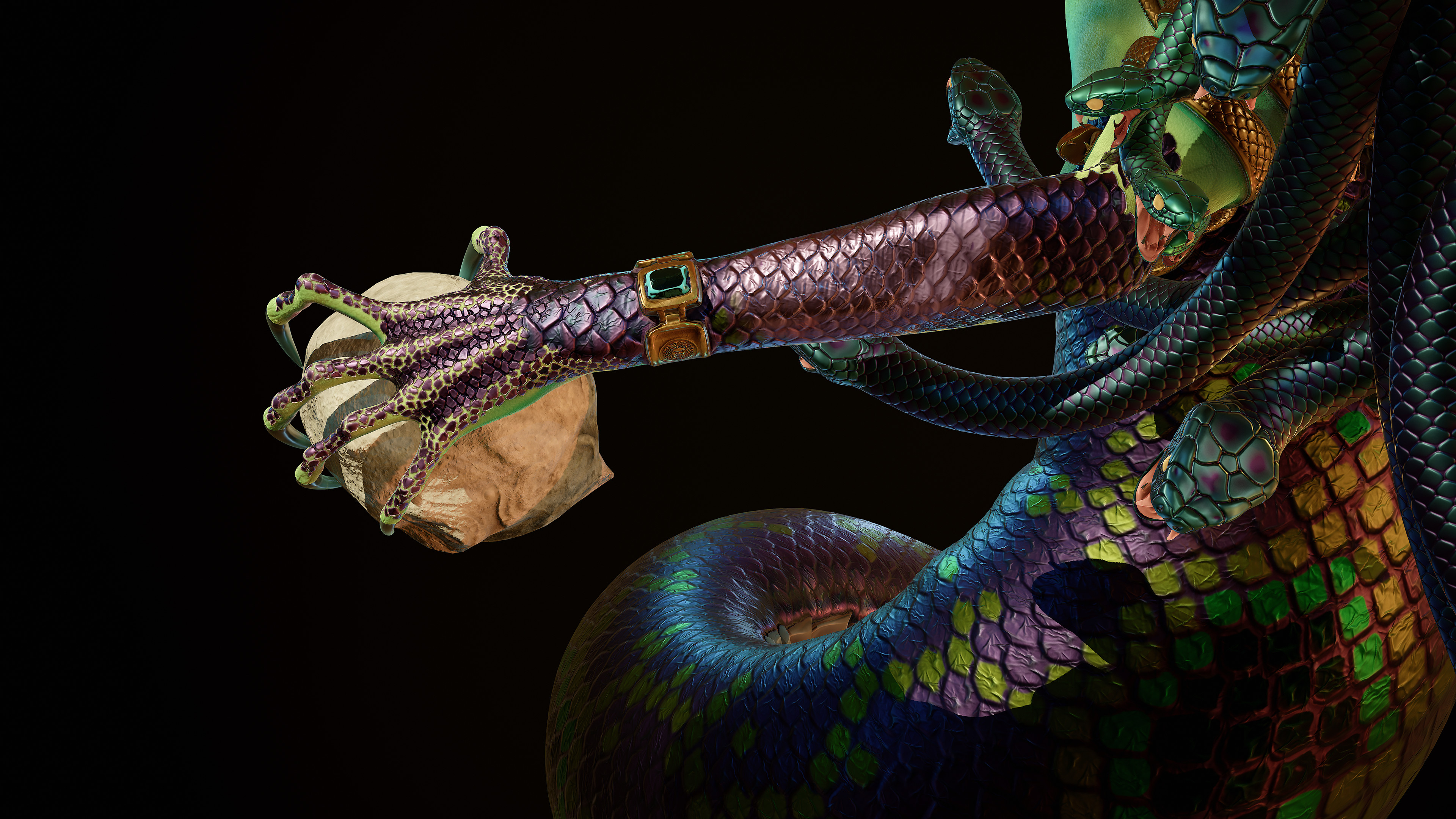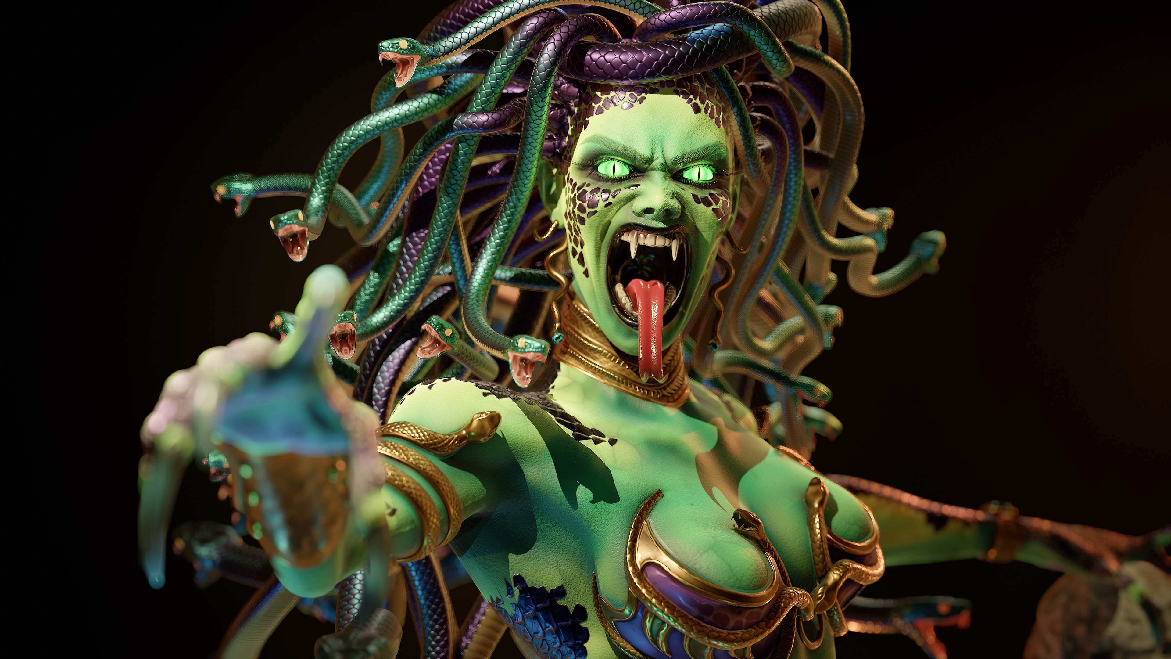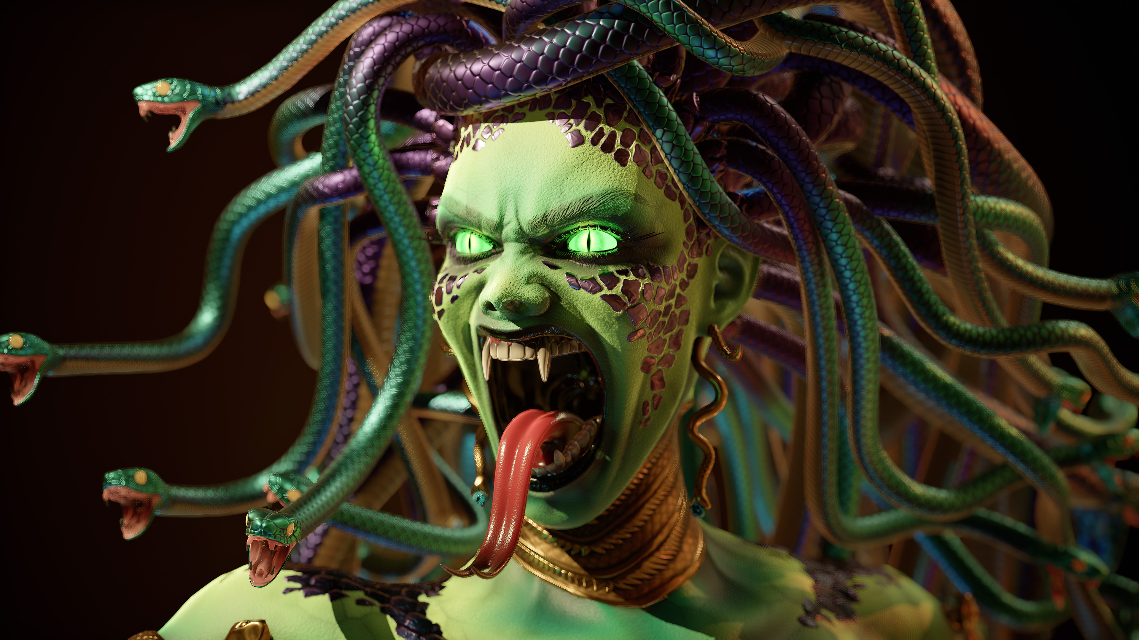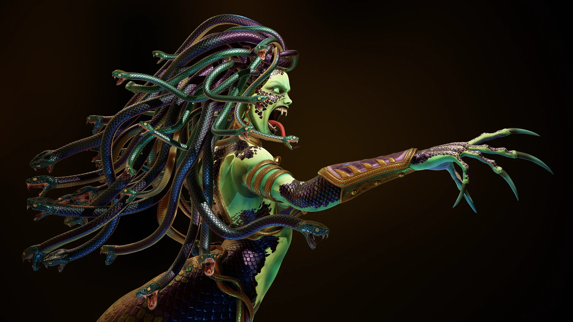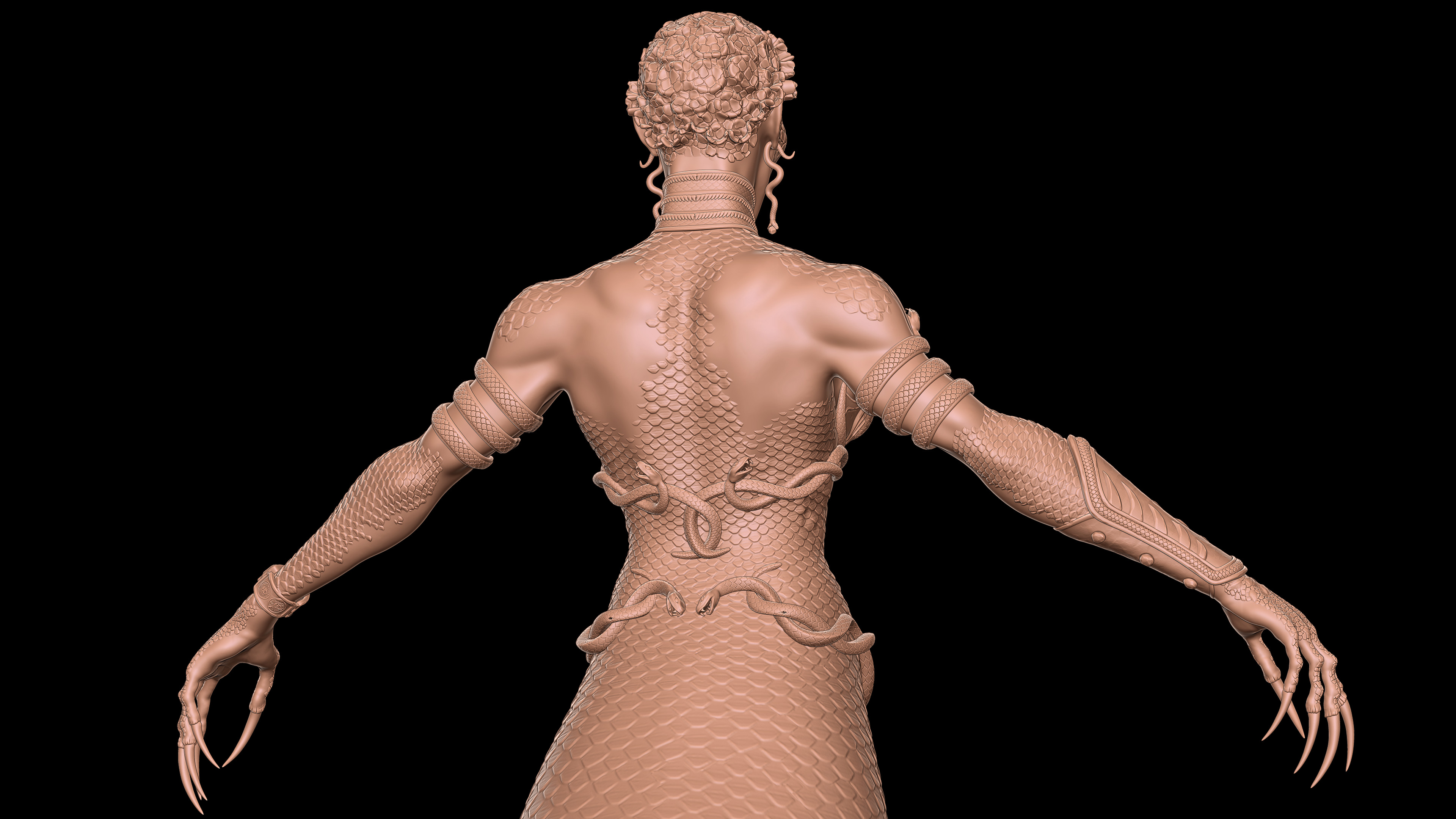 This is my interpretation of Medusa, created as a complete real-time character model with sculpting, texturing, shading, and rendering. My goal was to blend mythology, creature design, and stylised realism to create a Medusa that feels powerful, dangerous, and expressive.