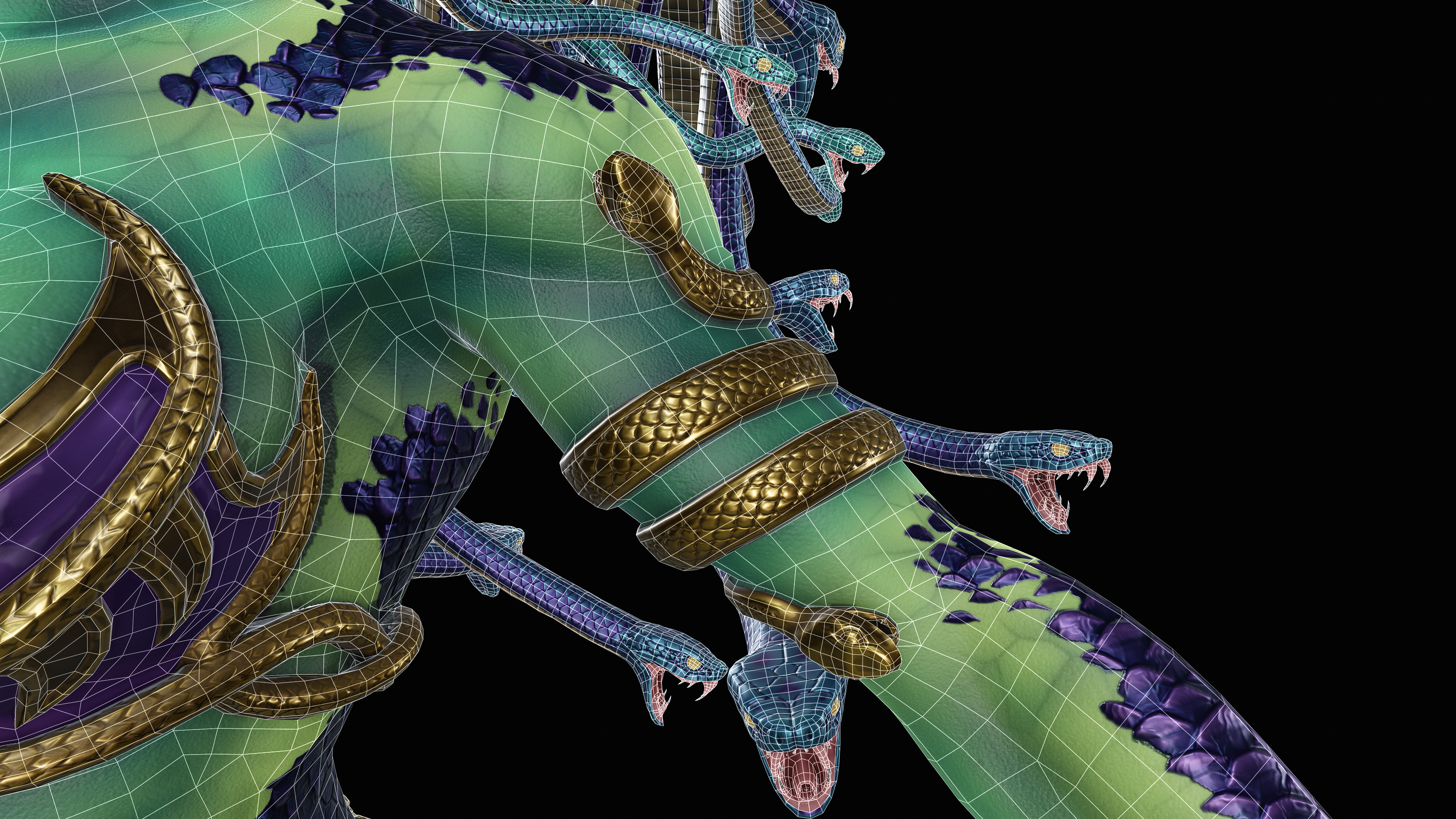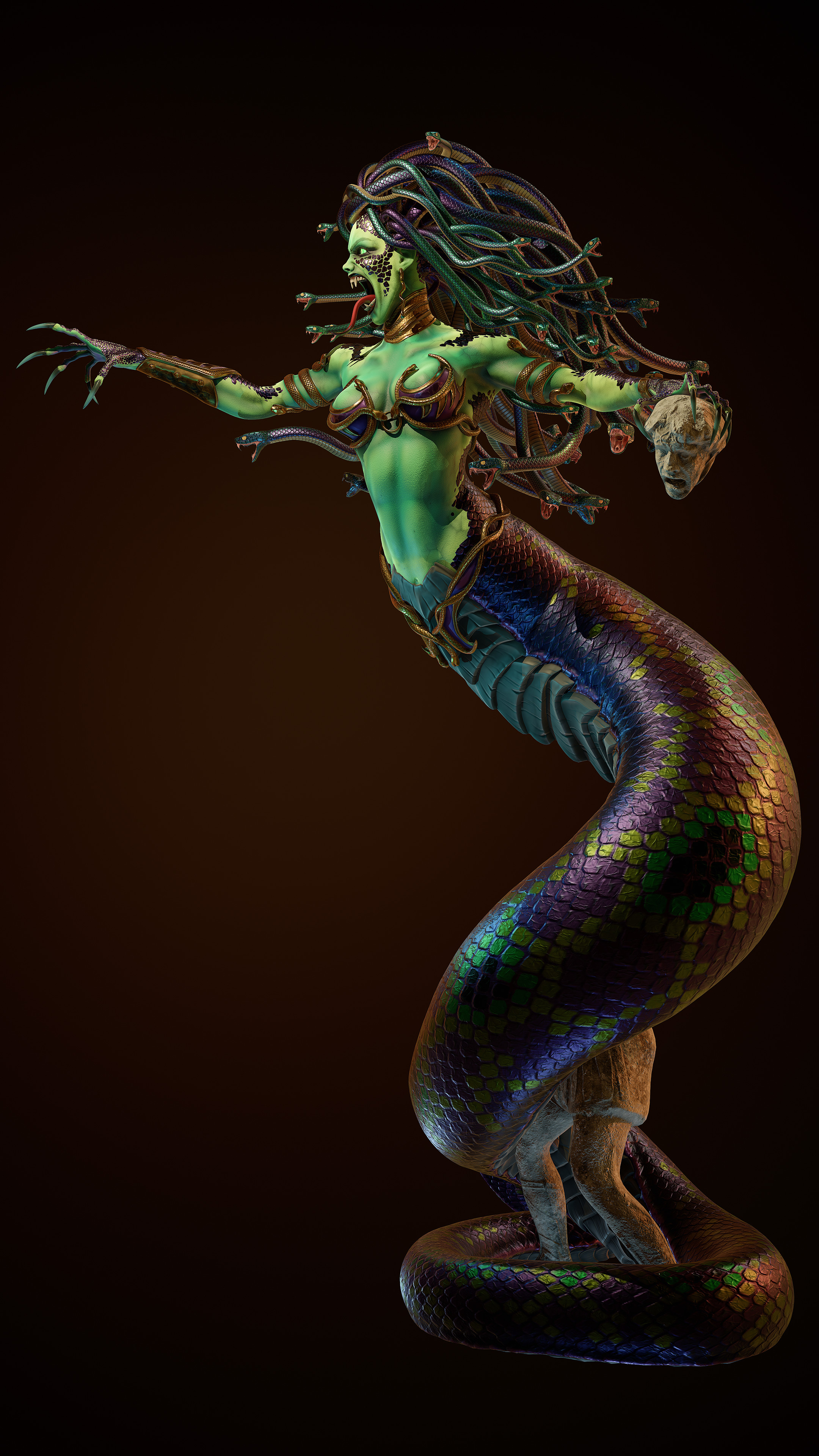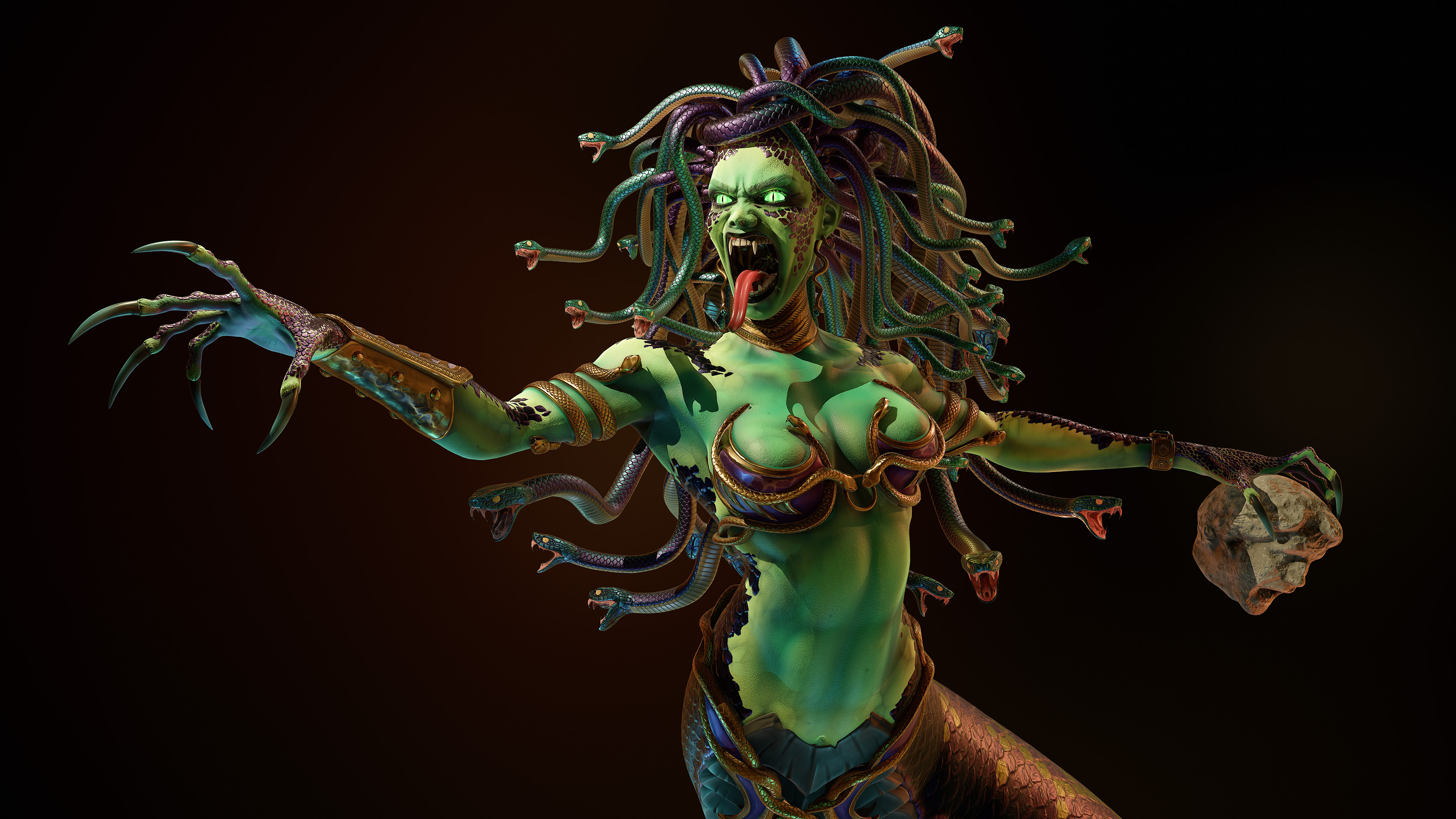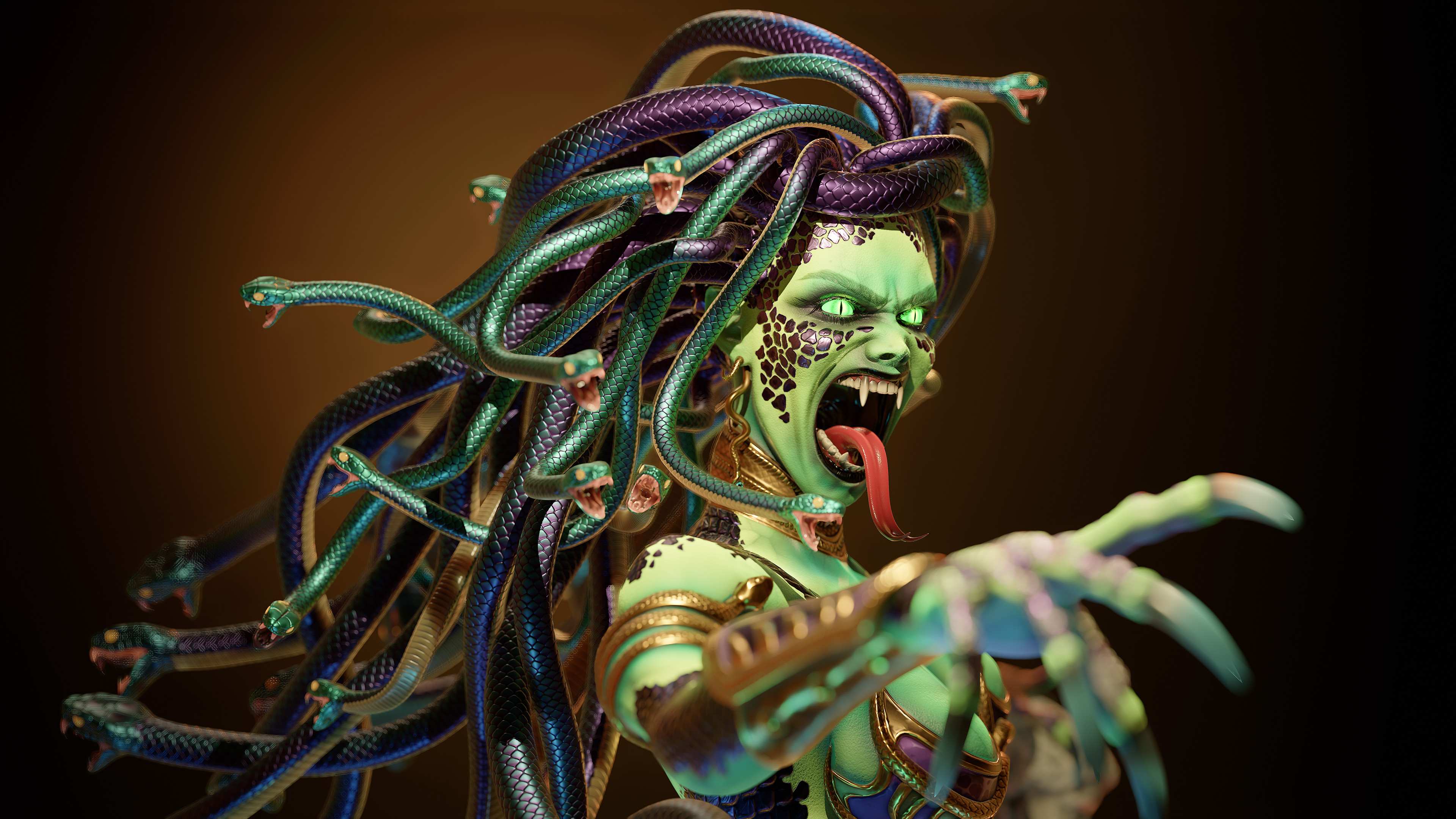 This is my interpretation of Medusa, created as a complete real-time character model with sculpting, texturing, shading, and rendering. My goal was to blend mythology, creature design, and stylised realism to create a Medusa that feels powerful, dangerous, and expressive.