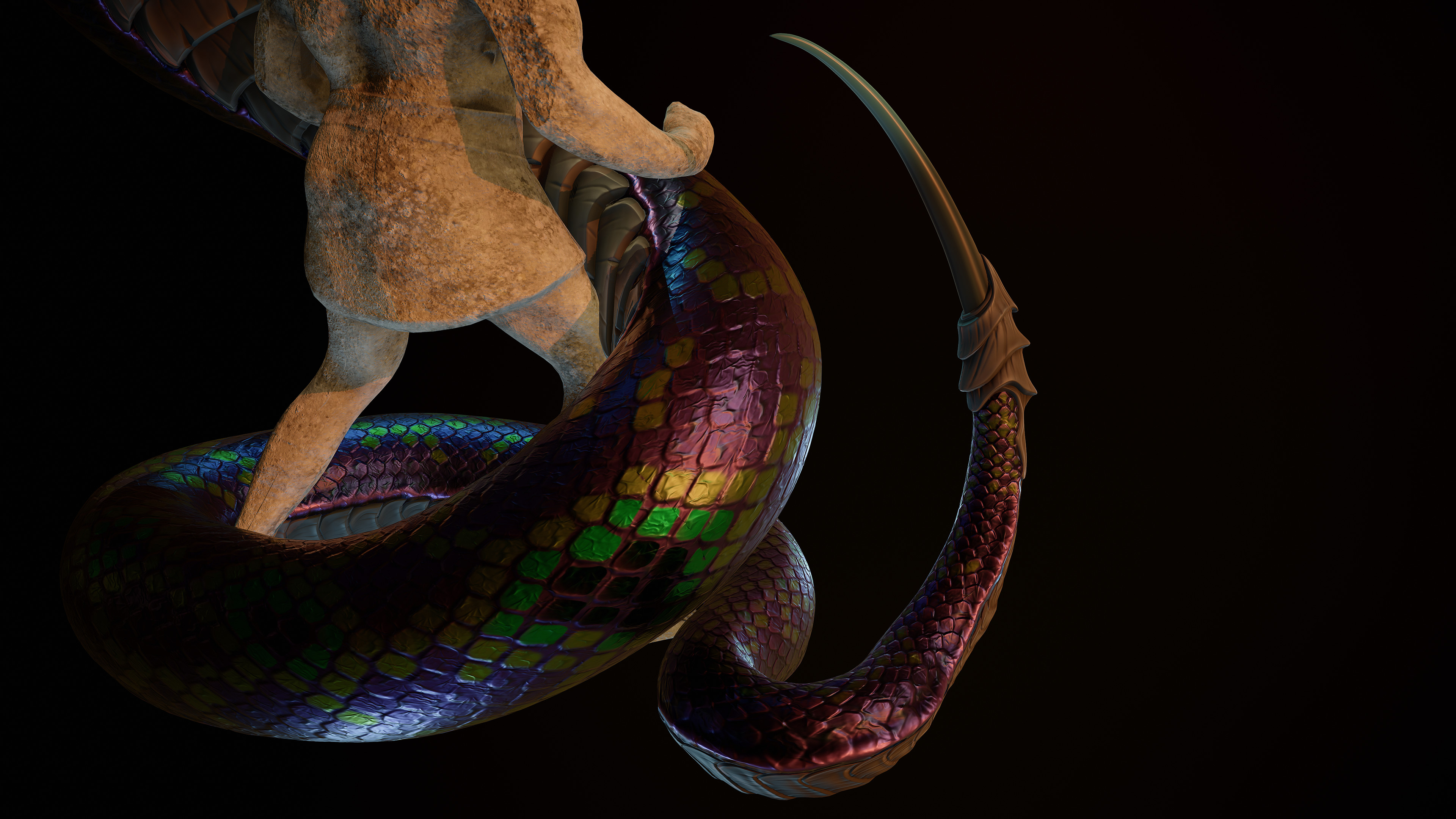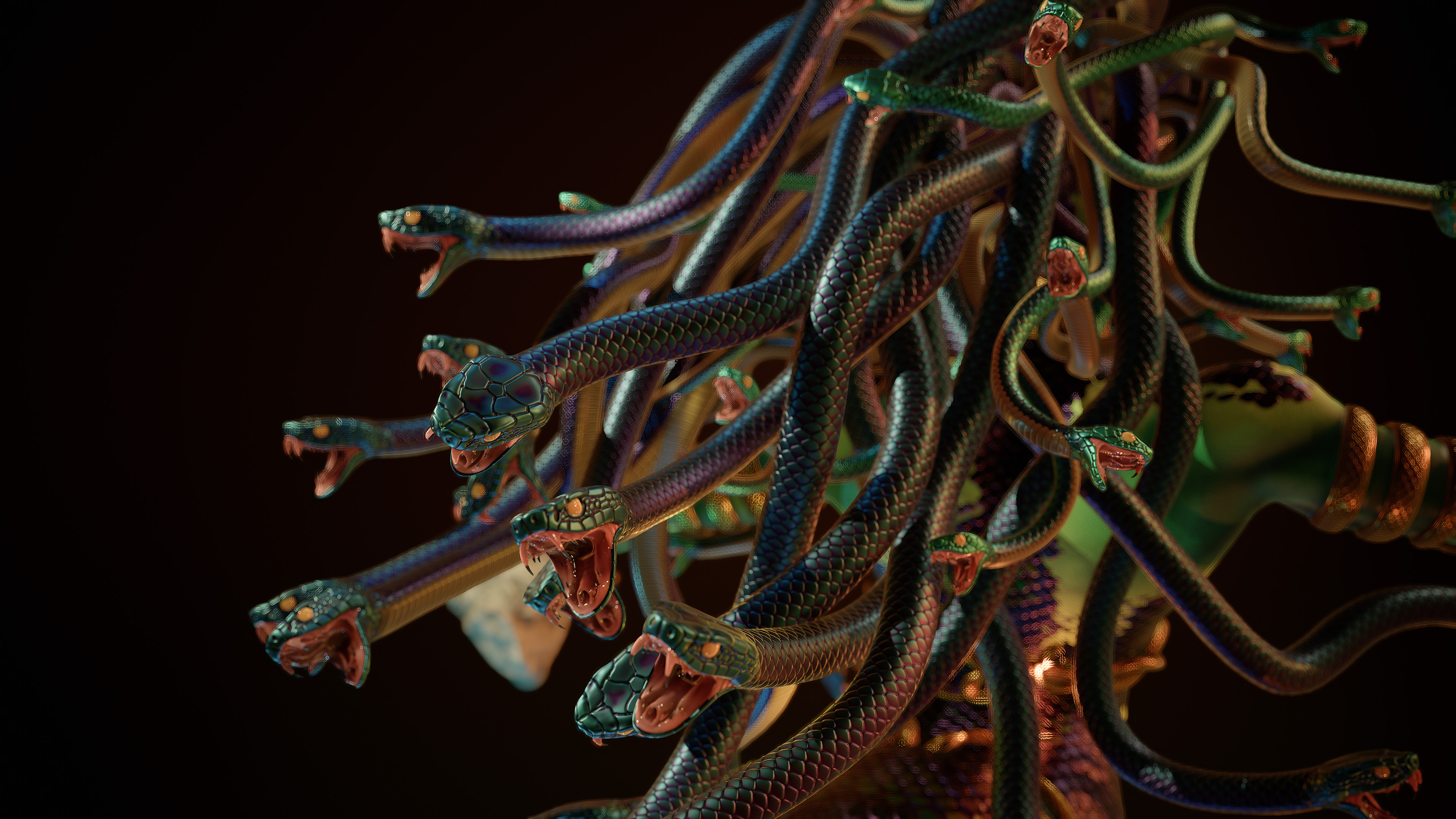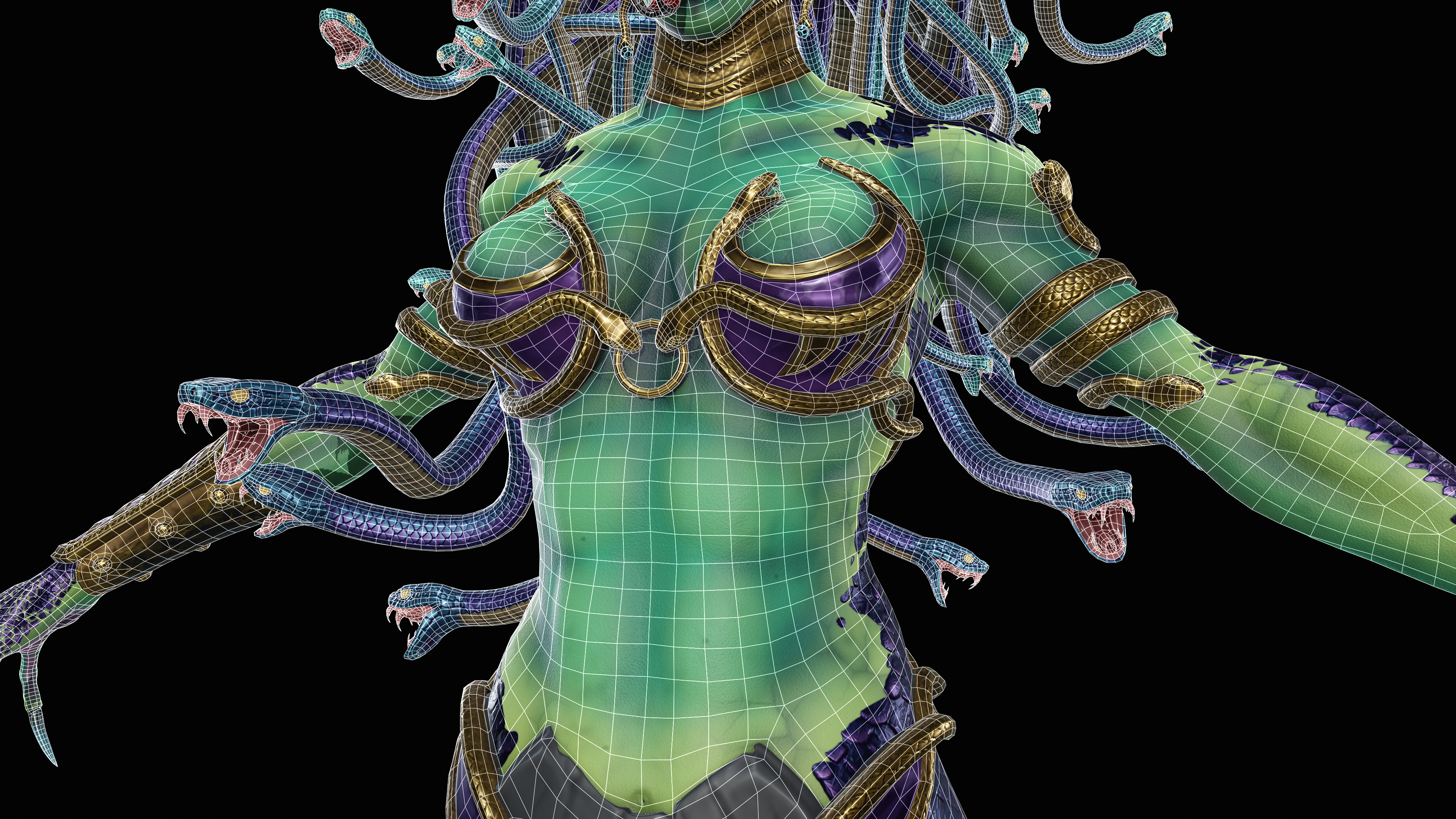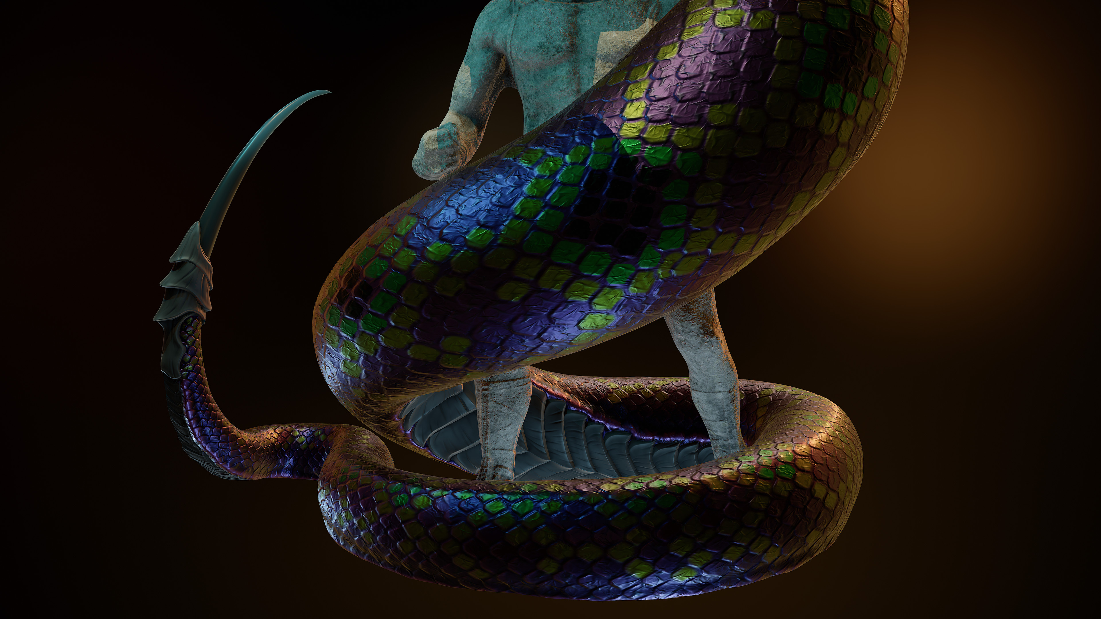 This is my interpretation of Medusa, created as a complete real-time character model with sculpting, texturing, shading, and rendering. My goal was to blend mythology, creature design, and stylised realism to create a Medusa that feels powerful, dangerous, and expressive.